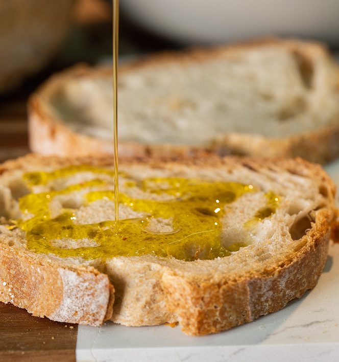 Amb crosta cruixent i molla humida i suau, ferma i esponjosa a la vegada. Al paladar, gust de cereals amb una acidesa lleu i equilibrada.